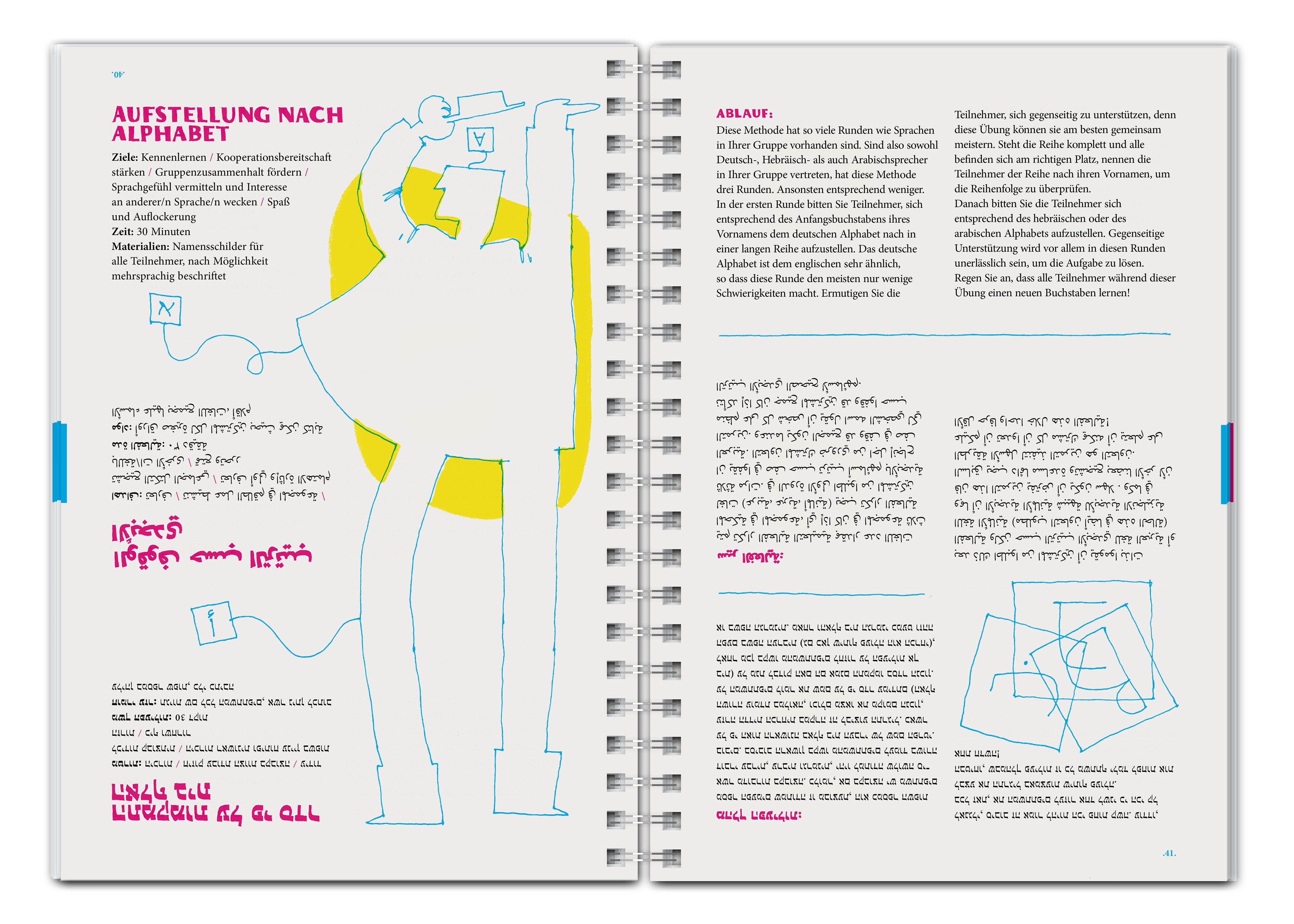 Layout and illustration for a handbook used for German-Israeli youth meetings.