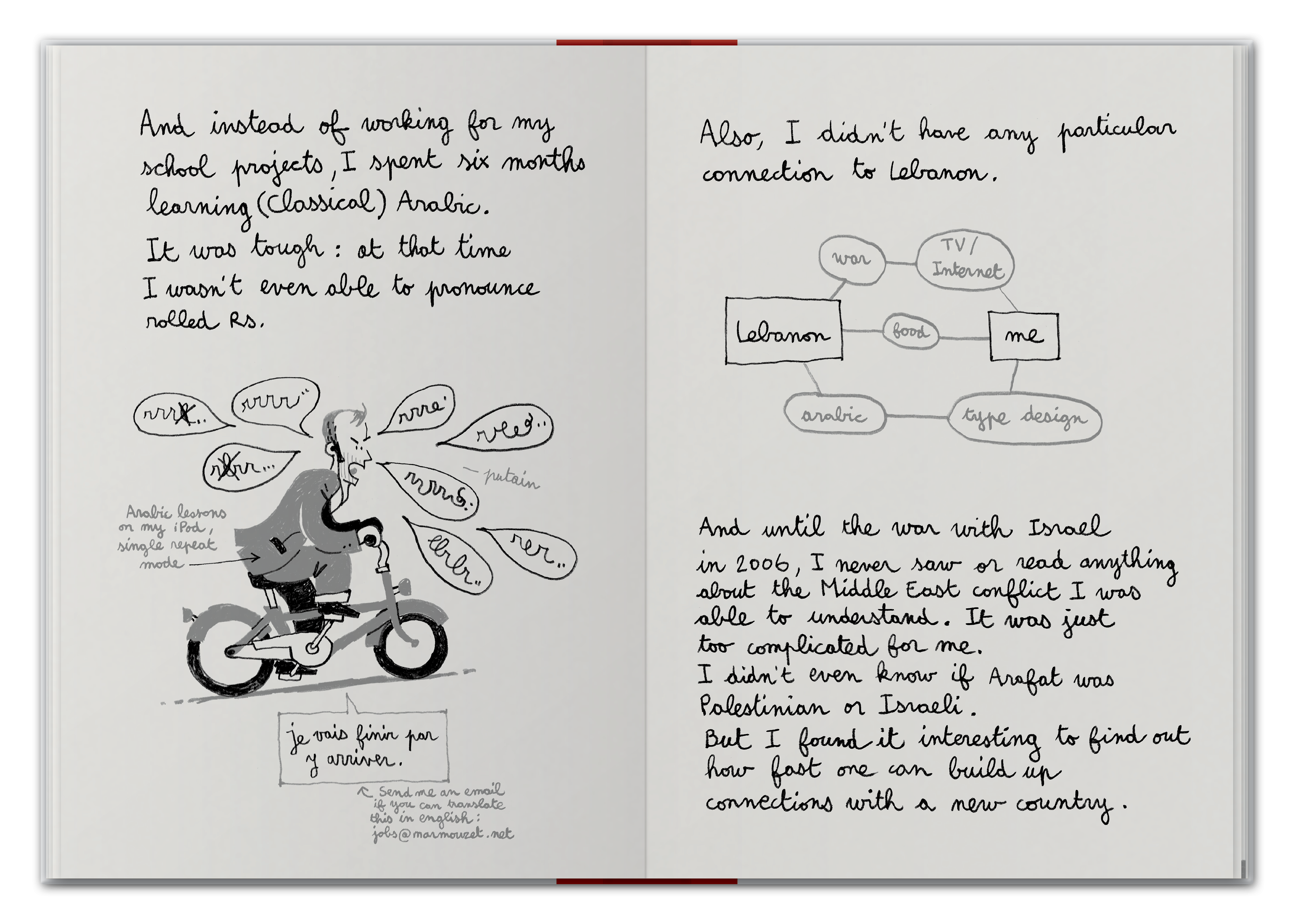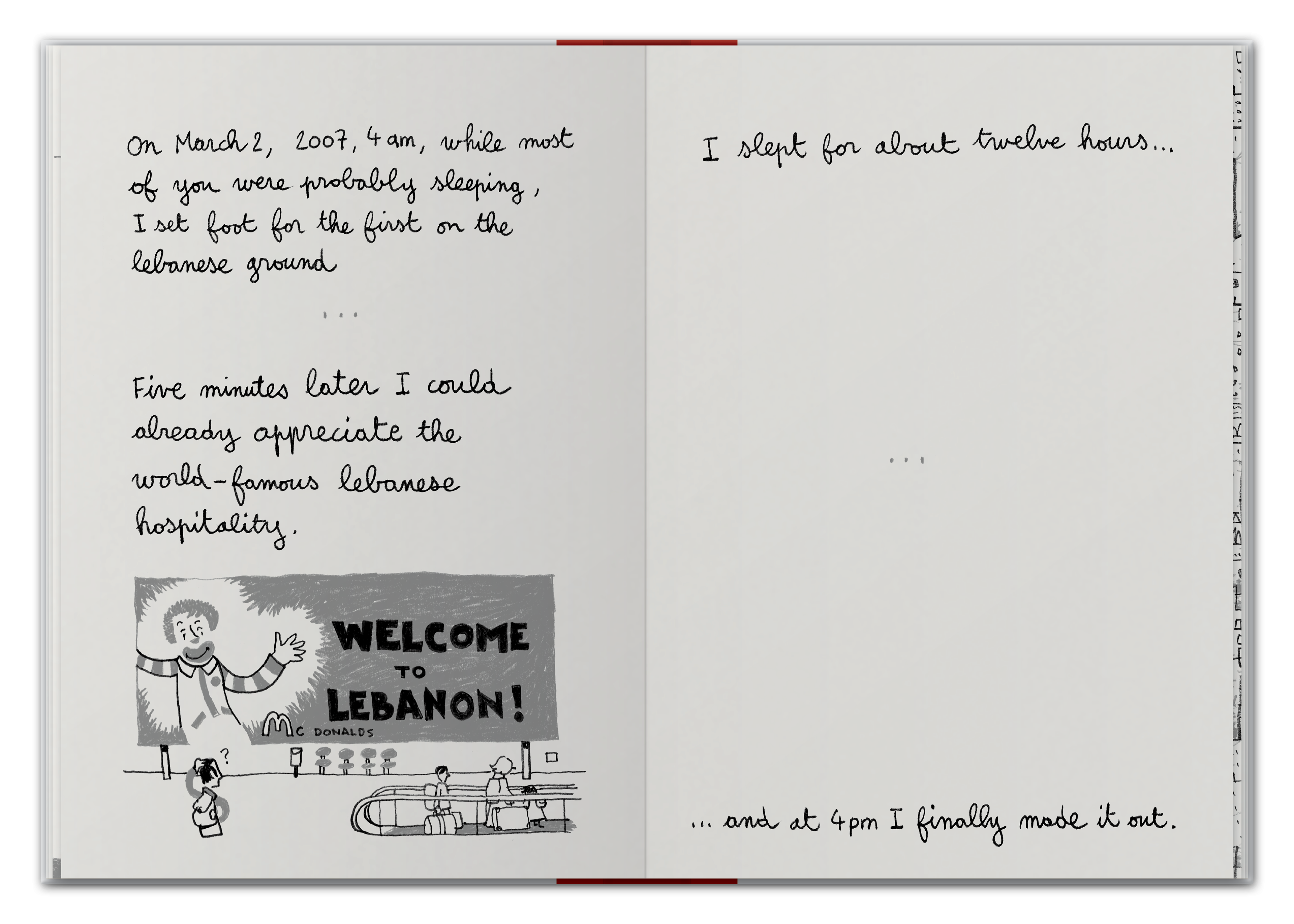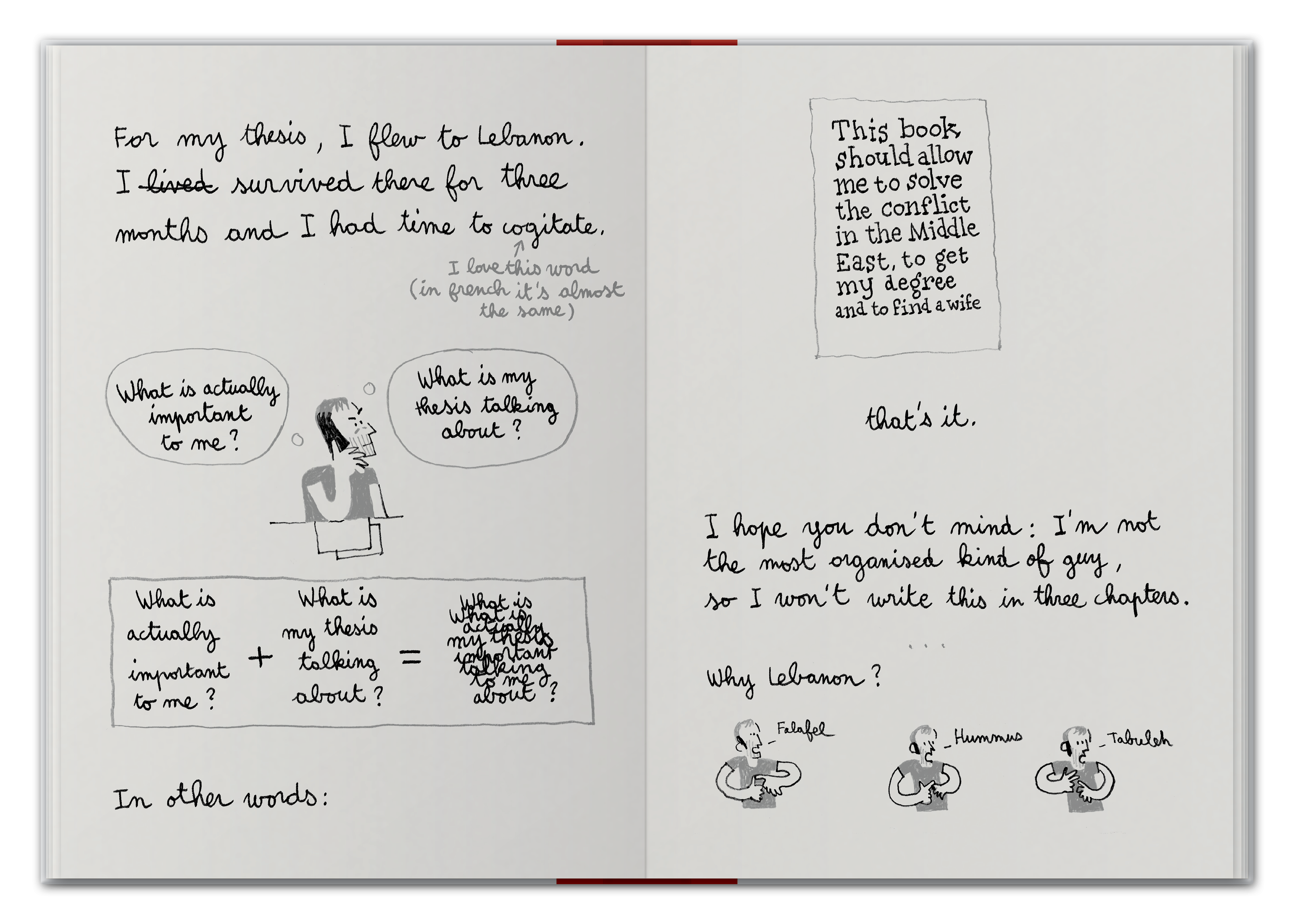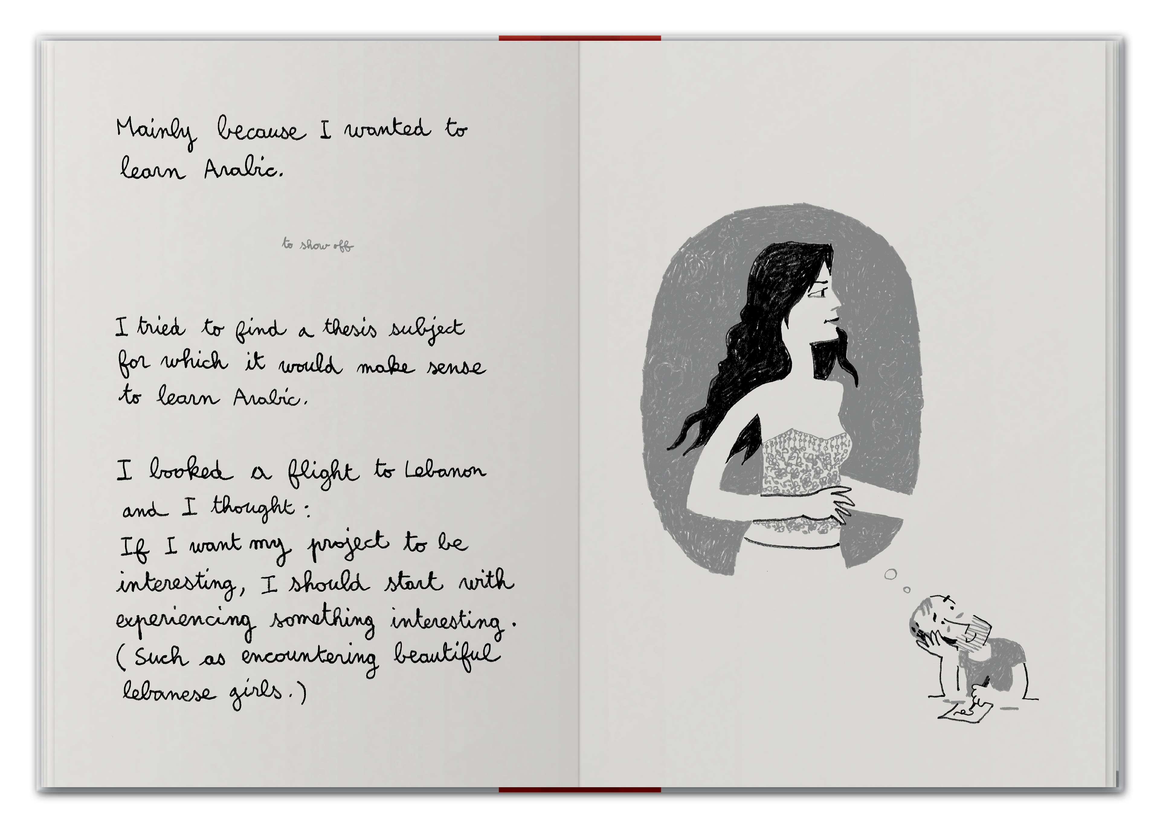 This Book Should Allow Me to Solve the Conflict in the Middle-East, to Get My Degree and to Find a Wife -Part 1- In 2007, I stayed 3 months in Beirut and wrote an illustrated book about my thoughts and experiences there, trying to make it entertaining despite the complexity of the topic.